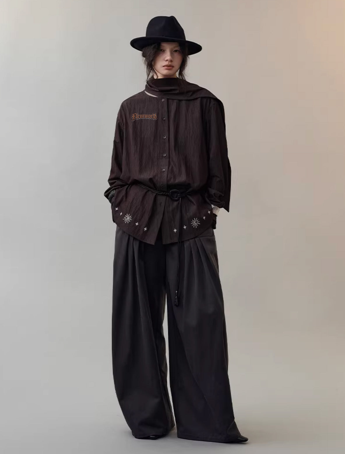 Celestial Embroidered Scarf-Collar Sculptural Shirt