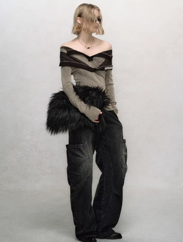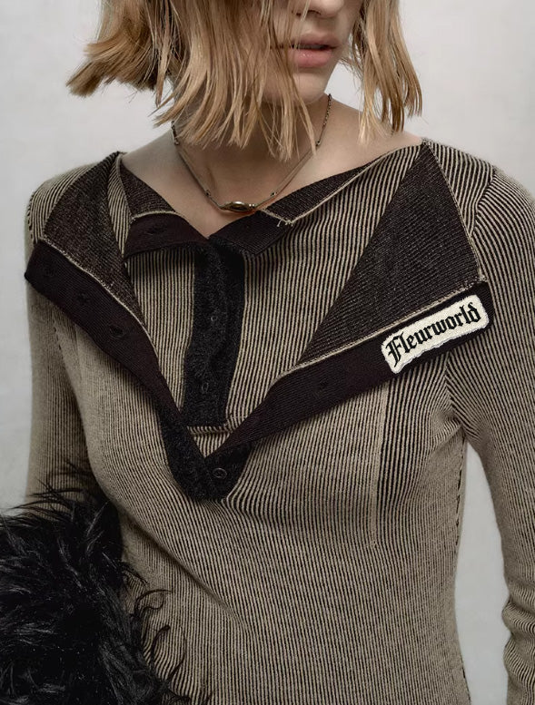 Layered Illusion Double-Collar V-Neck Knit Base Top