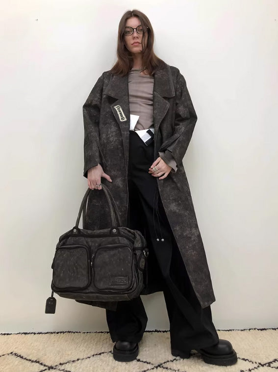 Post-Apocalyptic Denim-Patch Leather Coat