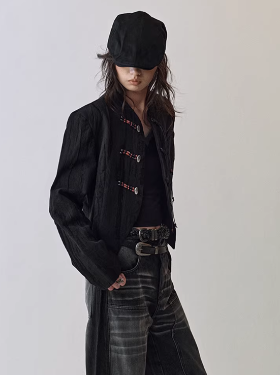Textured Jacquard Cropped Blazer